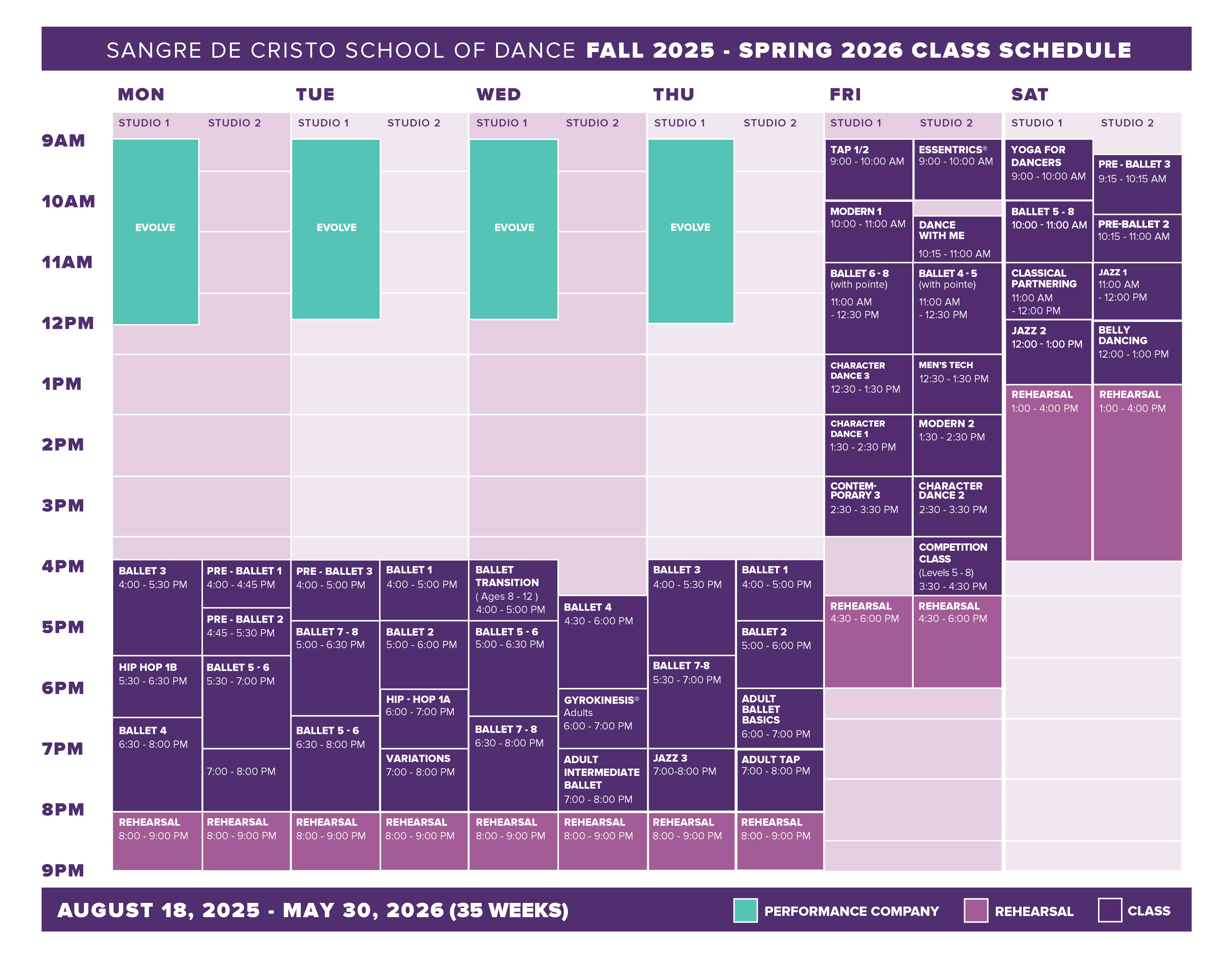 Fall /Spring 2025-2026 school year dates: August 18, 2025- May 30, 2026 (35 weeks)